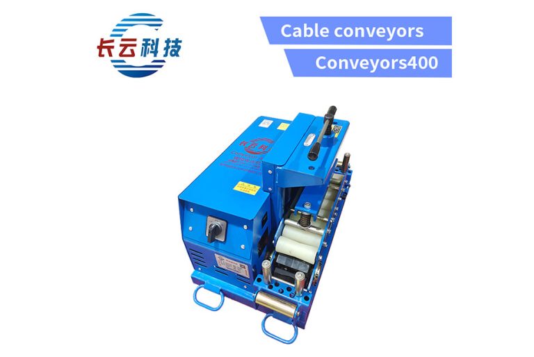 The Conveyor400 is a blue-colored cable conveyor featuring a compact design with switch control operation. This electric-powered unit delivers reliable performance with constant-speed output, ideal for synchronized multi-machine operations in confined spaces.