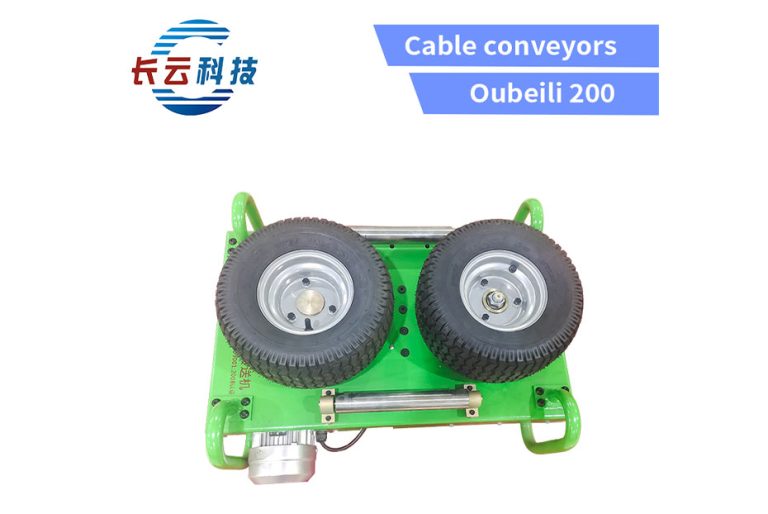The Oubeili 200 is a green wheel-type tractor featuring two large black wheels mounted on a rectangular base. Designed for confined spaces, this electric-powered cable tractor delivers reliable performance with simple operation.